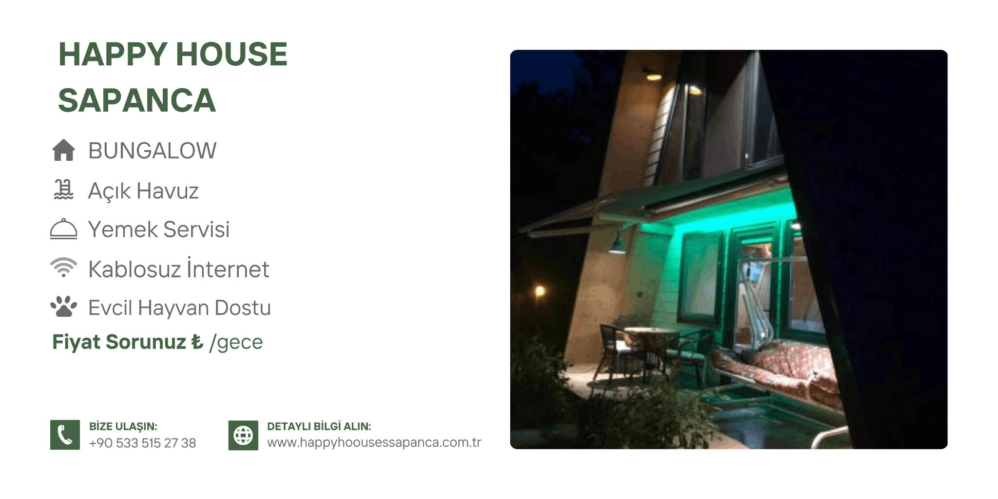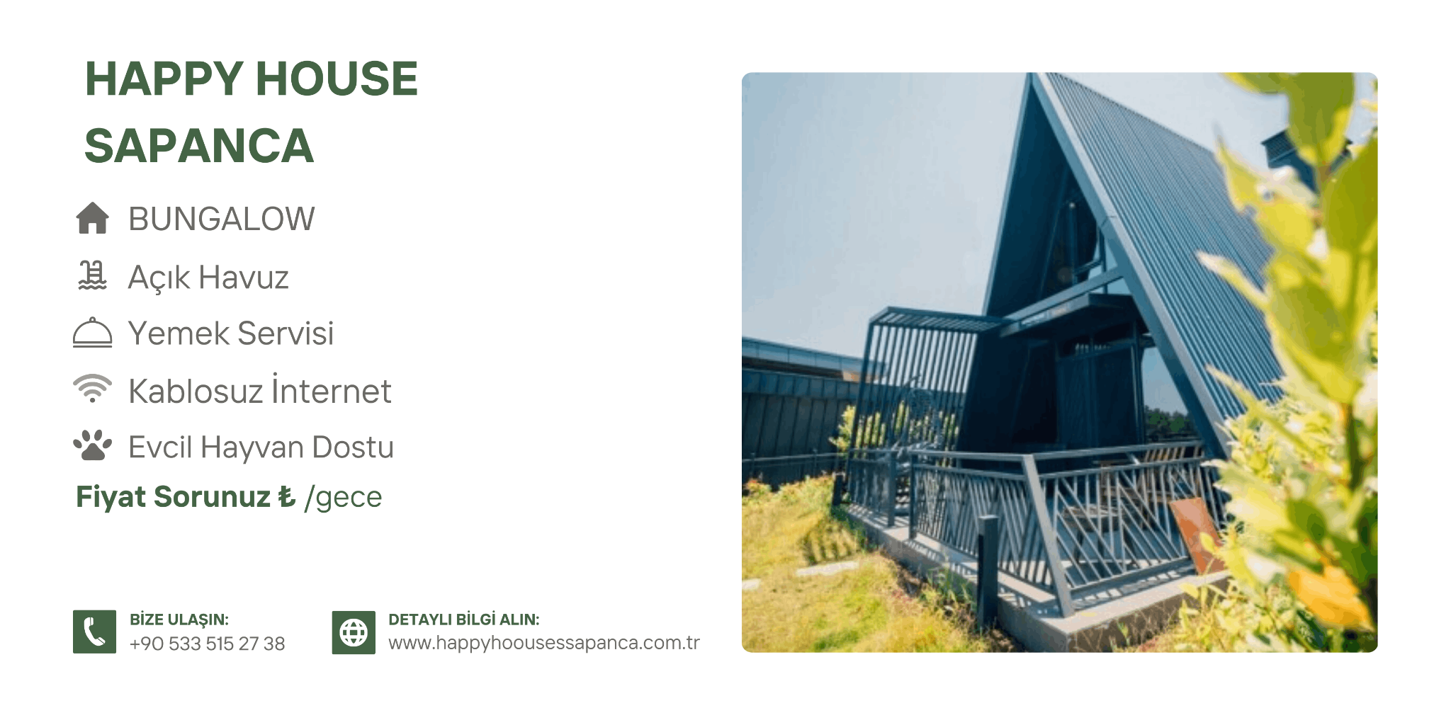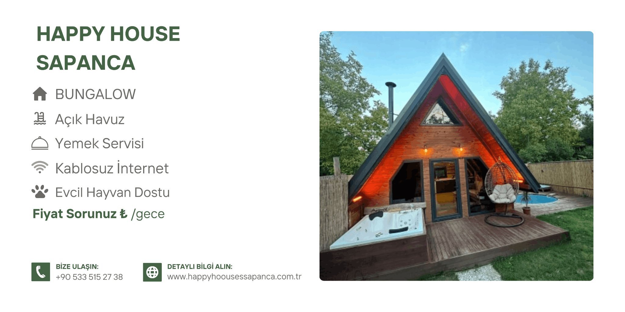 Sapanca bungalov tatili denildiğinde; doğa, havuz, konfor ve güvenilir hizmet anlayışıyla öne çıkan Happy House Sapanca, yılın her döneminde keyifli bir kaçamak için sizleri bekliyor.